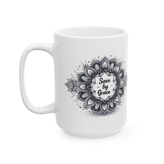 Amazing Grace, Mandala Leaves Ceramic Mug
